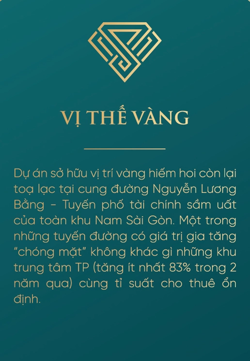 The Peak Garden là dự án sở hữu vị trí vàng hiếm hoi còn lại tọa lạc tại cung đường Nguyễn Lương Bằng - Tuyến phố tài chính “Tỷ đô” đắt giá bậc nhất của toàn khu Nam Sài Gòn, liền kề KĐT hiện đại Phú Mỹ Hưng và thuận tiện kết nối với khu vực trung tâm sầm uất.